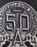 The front logo in metallic aluminum and metallic silver is the perfect representation of the team, giving it a modern and stylish appeal that any Angels fan would love. Halo in metallic pewter.  The 50th-anniversary side patch on the left mid-panel adds a unique touch to the design, commemorating a special moment in the team's history.