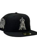 Introducing a unique custom Los Angeles Angels 50th anniversary gray brim new era fitted hat from Sports World. The 59Fifty high crown fitted hat is designed with a sleek all black color cap that provides a bold contrast to the classic design.