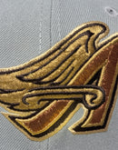 Introducing a unique custom throwback Angels 50th anniversary toast brim New Era fitted hat from Sports World. The 59Fifty high crown fitted hat is designed with a sleek all light gray color cap that provides a bold contrast to the classic design.