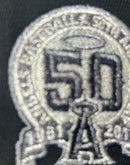 The front logo is in metallic dark gray and black with a metallic silver outline. The 50th-anniversary side patch on the left mid-panel adds a unique touch to the design, commemorating a special moment in the team's history.