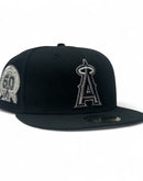 Introducing a unique custom throwback Angels 50th-anniversary gray brim New Era fitted hat from Sports World. The 59Fifty high crown fitted hat is designed with a sleek all-black color cap that provides a bold contrast to the classic design.