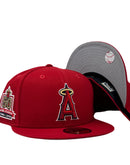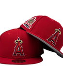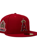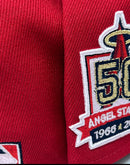 Introducing a unique custom Los Angeles Angels 50th anniversary gray brim new era fitted hat from Sports World. The 59Fifty high crown fitted hat is designed with a sleek all-red color cap that provides a bold contrast to the classic design.
