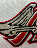 The front logo in red with metallic silver outline. Alternate Angels side patch on the left mid-panel adds a unique touch to the design, commemorating a special moment in the team's history.