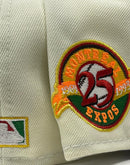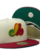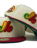 Presenting an exclusive New Era fitted hat only from Sports World. 59Fifty high crown cap. It features an all off white color cap with red visor. front logo in red, yellow and shamrock green. 25th anniversary side patch on right mid panel. tonal New Era flag on left mid panel. Flat MLB batter man in the back. green under visor. white sweat band. 100 percent polyester. imported from Bangladesh.