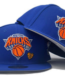 The New York Knicks Team Heart 59FIFTY Fitted Cap features an embroidered Knicks logo and heart shaped basketball at the front panels. Additional details include the NBA logo man with an embroidered quote at the rear and a gray under visor.