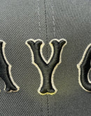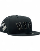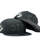 This 59Fifty high crown cap features a unique and stylish design, with a dark gray color cap. The front "City connect" logo in black with metallic silver outline. The new Citi Field side patch on the left mid-panel in various metallic color adds a special touch to the hat, while the metallic New Era flag on the right mid-panel completes the design.