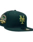 Celebrate the history of the New York Mets with this meticulously crafted Shea Stadium Fitted Hat. Inspired by the team’s legendary home, this cap offers a timeless and sophisticated look, perfect for loyal fans and style enthusiasts alike. The dark green base color sets the stage for a sleek front logo in metallic gold with metallic green outline with its Shea Stadium side patch, this cap proudly commemorates a golden era in New York baseball history, while its thoughtful details—from the tonal New Era flag to the warm gray under visor—make it an ideal choice for casual outings and spirited game days alike. Each element is designed to provide not only superior style but also optimal comfort, so you can wear it with pride season after season.