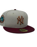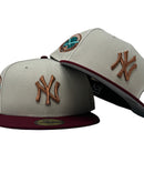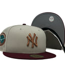 Introducing a unique customĀ New York YankeesĀ 1938 world series New Era fitted hat from Sports World 165. The 59Fifty high crown fitted hat is designed with a sleek all stone color cap with burgundy visor.