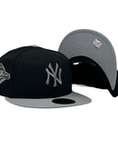 Introducing a unique custom New York Yankees 1996 world series gray brim New Era fitted hat from Sports World. The 59Fifty high crown fitted hat is designed with a sleek all black color cap with gray visor that provides a bold contrast to the classic design.