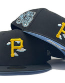 Presenting a New Era global release " Comic Cloud" pack. 59Fifty high crown cap. it features all black color cap. front logo in team color yellow with cloud background. 1979 world series side patch on right mid panel. white new era flag on left mid panel. Raised MLB batter man in the back. sky blue under visor. black sweat band. 100 percent polyester. imported from Bangladesh.
