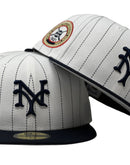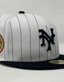 Introducing a unique custom New York Giants 1921 world series orange gray new era fitted hat from Sports World. The 59Fifty high crown fitted hat is designed with a sleek all-white navy pinstripe crown with navy blue visor that provides a bold contrast to the classic design.
