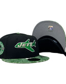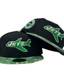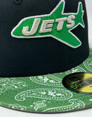 Introducing a unique custom New York Jets New Era fitted hat from Sports World. The 59Fifty high crown fitted hat is designed with a sleek all black color cap with a green paisley visor that provides a bold contrast to the classic design.