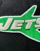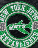 The front logo in metallic green airplane with white outline. Jets logo in metallic silver. 1960 established side patch on the left mid-panel adds a unique touch to the design, commemorating a special moment in the team's history.