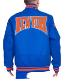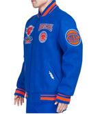 Elevate your streetwear game and showcase your allegiance to the iconic New York Knicks with the Pro Standard Crest Royal Blue Wool Varsity Jacket. This meticulously crafted jacket seamlessly combines style and functionality to keep you warm in the chilliest of temperatures while ensuring you stand out with its distinct design.