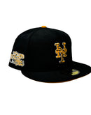 This 59Fifty high crown cap features a unique and stylish design, with a black color. The front logo in tiger print, making it stand out from other Mets hats. 1986 world series logo on the left mid-panel adds a special touch to the hat, while the tonal New Era flag on the right mid-panel completes the design.