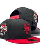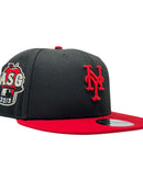 Unleash your passion for the New York Mets with this standout Snapback hat that blends urban style with classic baseball heritage. Designed for those who value premium craftsmanship and authentic sports gear, this New York Mets 2013 All-Star Game Snapback Hat showcases an all-black color cap for sophisticated look. A bold black logo with red  adds texture and contrast, while the red under visor provides a striking pop of color. Featuring the iconic 2013 All-Star Game side patch, this cap captures the spirit of a memorable baseball season, perfect for avid collectors and casual wear alike.