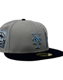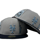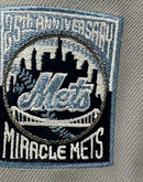 This 59Fifty high crown cap features a unique and stylish design, with all light gray color cap with navy blue visor. The front logo in metallic sky blue with Statue of liberty in metallic sky blue with silver outline, making it stand out from other Mets hats. 25th anniversary Miracle Mets logo on the left mid-panel adds a special touch to the hat, while the tonal New Era flag on the right mid-panel completes the design.