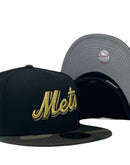 Introducing a unique custom New York Mets gray brim New Era fitted hat from Sports World. The 59Fifty high crown fitted hat is designed with a sleek all black color cap with woodland camo visor that provides a bold contrast to the classic design.