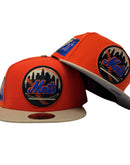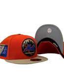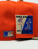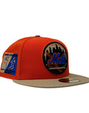 This 59Fifty high crown cap features a unique and stylish design, with an all-orange color cap with camel visor. The front logo is black, toast and orange with royal blue logo, making it stand out from other Mets hats. The Shea stadium side patch on the left mid-panel adds a special touch to the hat, while the tonal New Era flag on the right mid-panel completes the design.