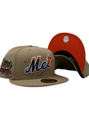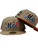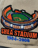 This 59Fifty high crown cap features a unique and stylish design, with a camel color cap. The front script logo in orange, metallic royal, black and metallic copper with white outline.Β Shea stadium side patch on the left mid-panel in various metallic color adds a special touch to the hat, while the metallic copper New Era flag on the right mid-panel completes the design.Β Β