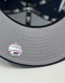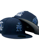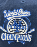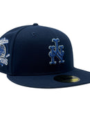 This 59Fifty high crown cap features a unique and stylish design, with an all-light navy-blue color cap. The front upside-down logo is in light navy blue with metallic silver outline. The 1986 world series side patch on the left mid-panel adds a special touch to the hat, while the tonal New Era flag on the right mid-panel completes the design.