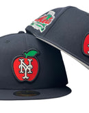 Introducing the New York Mets 40th Anniversary dark navy with apple logo gray Brim New Era Fitted Hat, the perfect addition to any Mets fan's collection. This exclusive and custom-designed hat is brought to you by Sports World 165, your go-to destination for all things authentic and high-quality when it comes to MLB, NBA, and NFL sportswear.