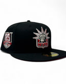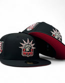 This custom New York Rangers 85th Anniversary Fitted New Era cap is a harmonious blend of classic design and modern detailing. The sleek black color cap makes it the perfect accessory for any occasion. The front Statue of Liberty logo, rendered in metallic silver, black and red exudes sophistication, while the 85th anniversary side patch adds a touch of nostalgic charm. Crafted with precision, this hat showcases the iconic NHL logo on the back, rounding off a design that pays tribute to sports heritage. Red under visor and black sweatband enhance style and functionality, making it an ideal pick for collectors and enthusiasts alike.