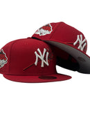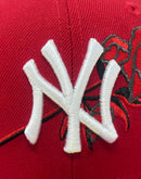 Introducing a unique custom New York Yankees 1999 world series New Era fitted hat from Sports World 165. The 59Fifty high crown fitted hat is designed with a sleek all red color cap.