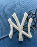 The Floral Yankees logo in front. Yankees logo in white and flower in sky blue with metallic pewter outline is the perfect representation of the team, giving it a modern and stylish appeal that any Yankees fan would love. 1999 world series side patch on the left mid-panel adds a unique touch to the design, commemorating a special moment in the team's history.