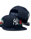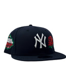 Designed with practicality and style, this New Era snapback features a high crown, ensuring a structured fit that enhances its bold aesthetic. The iconic 1999 world Series side patch and vibrant navy blue, red, and green floral detailing on the left mid-panel elevate the design, creating a perfect blend of classic sports heritage and modern fashion.