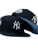 Introducing a unique customĀ New York YankeesĀ 1999 world series sky blue brim New Era fitted hat from Sports World 165. The 59Fifty high crown fitted hat is designed with a sleek all navy-blue color cap.