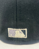 Designed with practicality and style, this New Era fitted hat features a high crown, ensuring a structured fit that enhances its bold aesthetic. The iconic 2000 World Series side patch in black, white, and metallic silver on the left mid-panel elevates the design, creating a perfect blend of classic sports heritage and modern fashion.