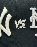 Inspired by the subway Series, we Introduce a unique custom New Era fitted hat from Sports World 165. The 59Fifty high crown fitted hat is designed with a sleek all black color cap.