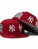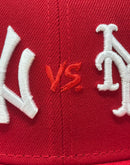 Inspired by the subway Series, we Introduce a unique custom New Era fitted hat from Sports World 165. The 59Fifty high crown fitted hat is designed with a sleek all red color cap.