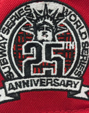 The front Mets and Yankees in white are the perfect representation of the team, giving it a modern and stylish appeal that any New York fan would love. 25th anniversary of the subway series side patch on the left mid-panel adds a unique touch to the design, commemorating a special moment in the team's history.