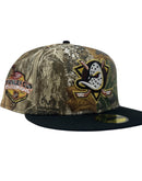 Celebrate 2007 Stanley cup championship with the Anaheim Ducks 59FIFTY New Era Fitted Hat. This expertly designed combines timeless style with premium craftsmanship, making it a standout addition to any fan's collection. The bold real tree color cap with black visor is complemented by striking metallic details, including the iconic Anaheim Ducks logo on the front and a meticulously embroidered 2007 Stanley cup championship side patch. Designed with comfort and durability in mind, this hat is perfect for showcasing your team pride while maintaining a sleek and sophisticated look.
