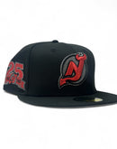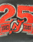 Celebrate quarter century of hockey excellence with the New Jersey Devils 25th Anniversary 59FIFTY New Era Fitted Hat. This expertly designed combines timeless style with premium craftsmanship, making it a standout addition to any fan's collection. The bold black cap is complemented by striking metallic details, including the iconic Devils logo on the front and a meticulously embroidered 25th Anniversary side patch. Designed with comfort and durability in mind, this hat is perfect for showcasing your team pride while maintaining a sleek and sophisticated look.