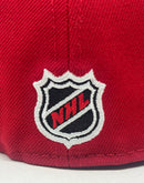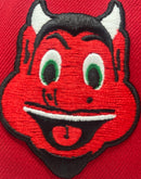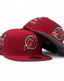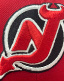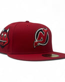 New Jersey Devils mascot logo 59FIFTY New Era Fitted Hat. This expertly designed piece combines timeless style with premium craftsmanship, making it a standout addition to any fan's collection. The bold all-red color cap, including the iconic Devils logo on the front in red, white, and black, and a meticulously embroidered mascot logo side patch. Designed with comfort and durability, this hat is perfect for showcasing your team pride while maintaining a sleek and sophisticated look.