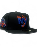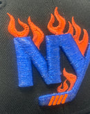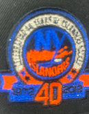 This custom New York Islanders 40th Anniversary Fitted New Era cap is a harmonious blend of classic design and modern detailing. The sleek all black color fitted. Front blazing fire Ranger's logo in metallic royal blue with orange outline, while the 40th anniversary side patch adds a touch of nostalgic charm. Crafted with precision, this hat features the iconic NHL logo on the back, completing a design that pays tribute to sports heritage. Gray under visor and black sweatband enhance style and functionality, making it an ideal pick for collectors and enthusiasts alike.