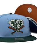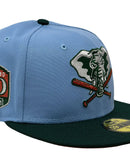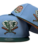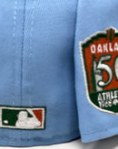Introducing a unique custom Oakland Athletics 50th anniversary rust orange brim new era fitted hat from Sports World. The 59Fifty high crown fitted hat is designed with a sleek all-sky blue color crown and a stylish green visor that provides a bold contrast to the classic design.