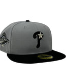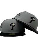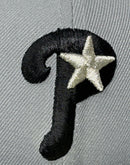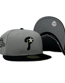 Introducing a unique custom Philadelphia Phillies gray brim New Era fitted hat from Sports World. The 59Fifty high crown fitted hat is designed with a sleek all light gray color cap with black visor that provides a bold contrast to the classic design.