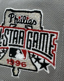 Dedicated to commemorating the illustrious 1996 All Star seasons journey of the Philadelphia Phillies, this snapback encapsulates the essence of the team's legacy. The all-light gray color cap with red visor. Front logo in white with star in red, symbolizing the Phillies bold spirit and unwavering determination. Adorning the left mid-panel is the iconic 1996 All-star gameĀ side patch, a testament to four decades of triumphs, challenges, and unforgettable moments in Phillies history.