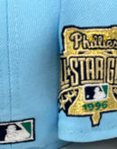 The front logo in camel with navy blue and metallic gold outline is the perfect representation of the team, giving it a modern and stylish appeal that any Phillies fan would love. 1996 all star game side patch on the left mid-panel adds a unique touch to the design, commemorating a special moment in the team's history.