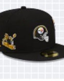 Representing your favorite team Pittsburgh Steelers throughout decades. The Just Don NFL x New Era 59fifty fitted are here. It features an all black color cap. Team original old school logo in front. Two additional logo in the front mid panel. Just Don side patch in left min panel. NFL logo in the back. Light gray under visor.