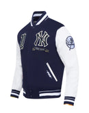Quilted lining Stand-up collar Two front pockets Two interior pockets Heavyweight jacket suitable for cold temperatures Heat-sealed applique with raised embroidered detail Heat-sealed felt applique with chenille detail Faux leather...