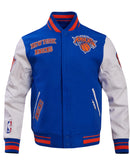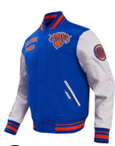 The Pro Standard Men's New York Knicks Royal Wool Varsity Jacket is a must-have for any fan of the team. Made from high-quality wool, this jacket will keep you warm and stylish all season long