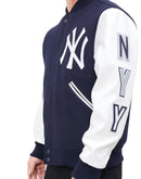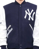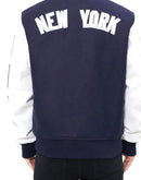 The Pro Standard MLB New York Yankees Logo Blended Varsity Jacket tops off your appearance and let's you rep you team all year long. This classic vasity features a 100% wool shell with a full snap-button closure to keep you nice a warm. Chenille embroidery graphics on the front, back and down the sleeves let's everyone know who you love!