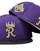 Introducing a unique custom Kansas City Royals pink brim New Era fitted hat from Sports World. The 59Fifty high crown fitted hat is designed with a sleek all deep purple color cap with black visor that provides a bold contrast to the classic design.