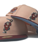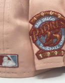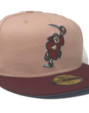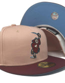 Presenting an exclusive "macaron pack" only from Sports world. 59Fifty high crown cap. It features a blush color cap with burgundy visor. front logo in burgundyΒ metallic copper and sky blue.Β 25th anniversary side patch on right mid panel. tonal new era flag on left mid panel. flat MLB batter man in the back. sky blue under visor. white sweat band. crown in 100 percent cotton and visor in 100 percent polyester. imported from Bangladesh.