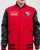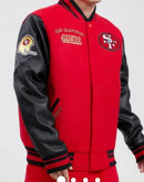 Combat the cold in style while showcasing your timeless San Francisco 49ers classic rib Varsity jacket from Pro Standard. The quilted lining keeps you nice and toasty in harsher temperatures while the interior and exterior pockets bring convenience.